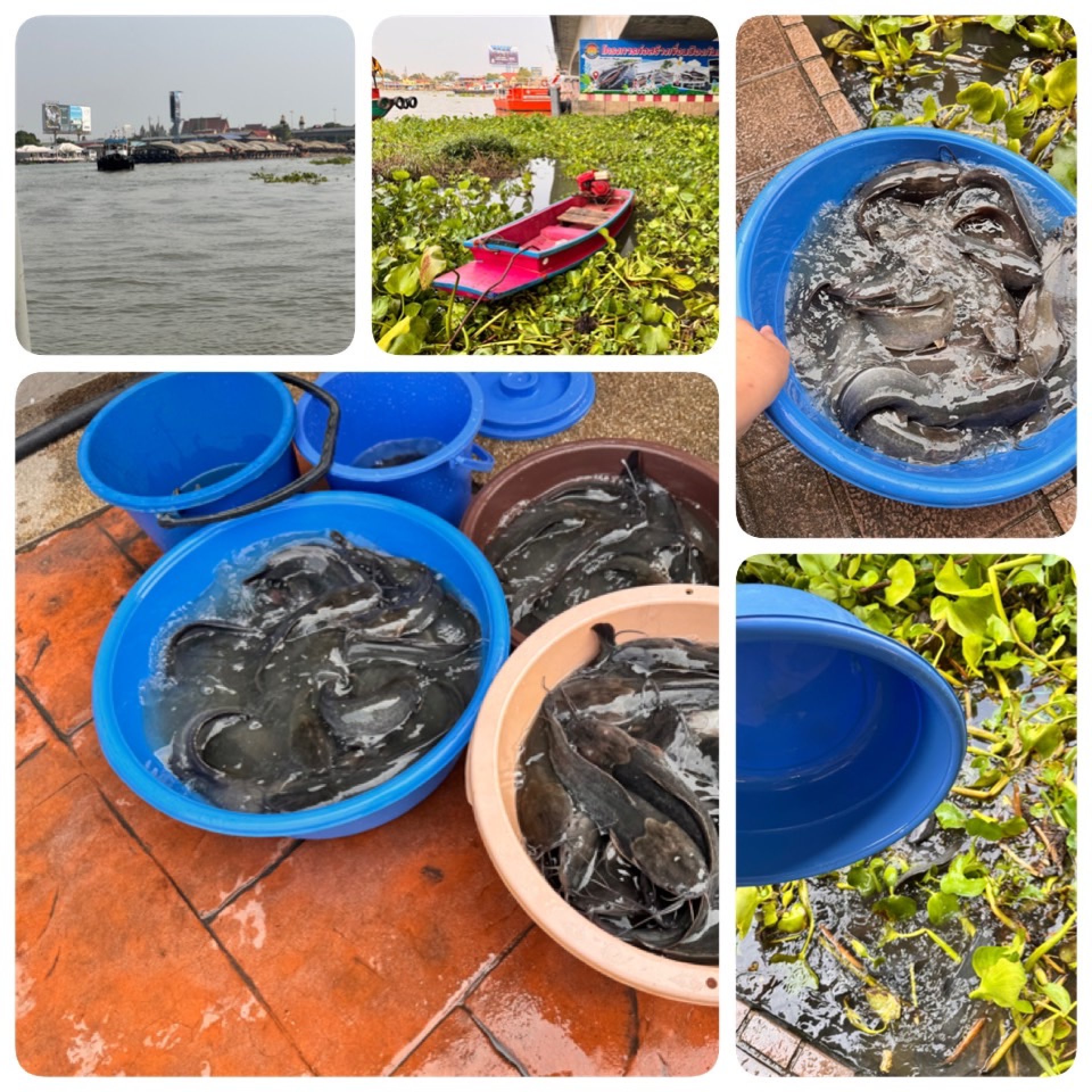 Makes Merit, [Apricot] Releasing 112 Fish at Wat Bo.